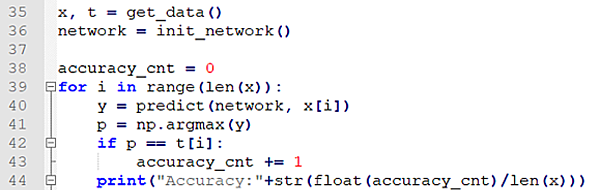 第43行就兩個陣列如果相同的內容就會是True,然後使用np.sum就會把所有True加起來。