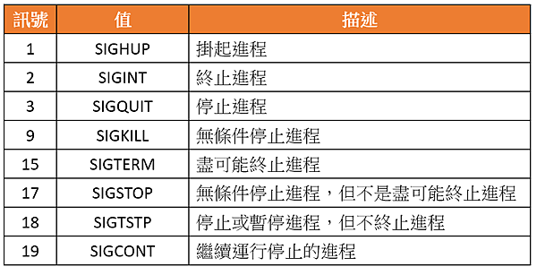 Linux總共有30種訊號,但是下面只會列出常見的訊號。