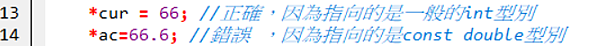 第10行的ac也是一個const指標,指不過指向的型別是const double。
