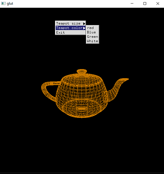 glutAddSubMenu("Teapot color", menu_entry_2);
