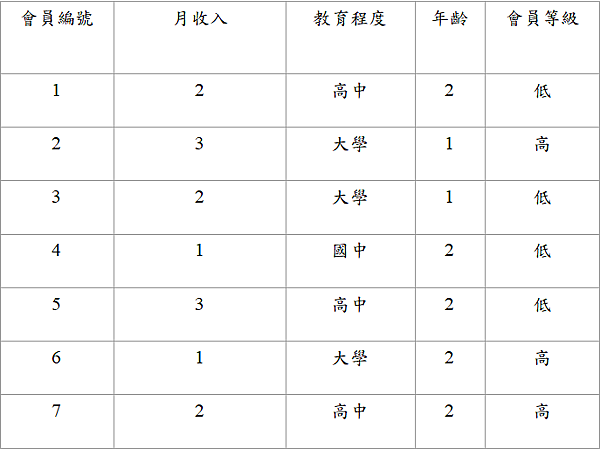 教育程度是大學的有三個,等級是高、低跟高,不一致量是1。