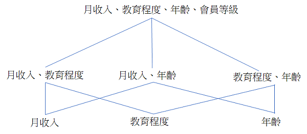 上述的維度不大,如果當維度大起來就有2^n-1的可能,還有可以設定不一致量大於多少就不要了,來增加探勘的速度,所以下面介紹兩個選擇的策略。