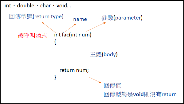 1. void — 沒有回傳值,void就是空的意思,不用在最後加上return。
