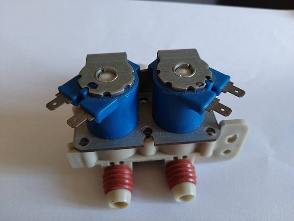 洗衣機拆開,這個藍色是電磁閥,那這個東西不容易壞掉,主要是裡面的那一根,因為我家是用地下水,所以久了會有問題。